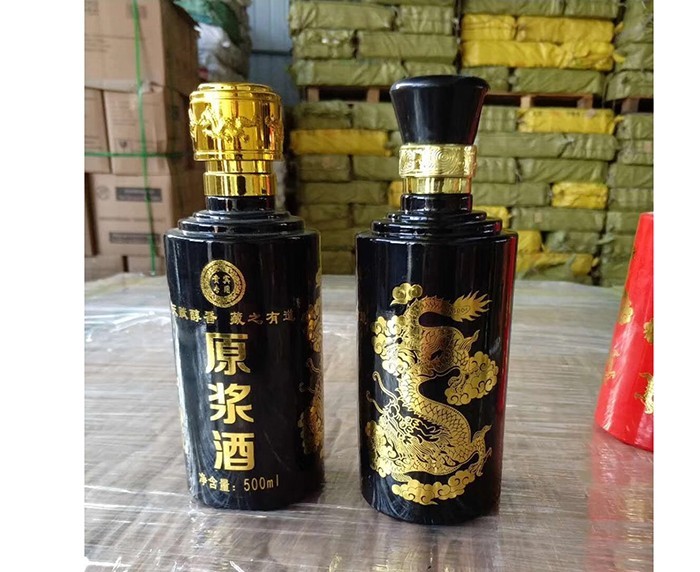 蒙砂酒瓶是在制品玻璃上,粘附一定大小面積的玻璃色釉粉,玻璃瓶廠經(jīng)過580~600℃的高溫烘烤,使玻璃色釉涂層凝結(jié)在玻璃外表,并顯現(xiàn)出具有與玻璃主體不同顏色的一種裝飾辦法。粘附玻璃色釉粉,可用排筆涂刷,亦可用膠輥滾涂。經(jīng)過絲印加工,能夠得到蒙砂面的樓空圖案。 其辦法是:在玻璃制品外表上,絲印一層由阻熔劑構(gòu)成的圖案紋樣。
